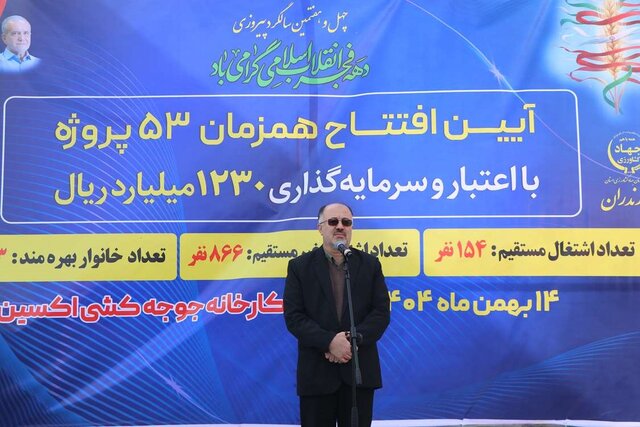 اسداله تیمورییانسری سهشنبه ۱۴ یهمن در مراسم افتتاح ۵۳ پروژه کشاورزی در سومین روز از دهه فجر در جمع خبرنگاران شهرستان ساری با تقدیر از نقش بیبدیل بخش خصوصی در توسعه کشاورزی، اعلام کرد: این استان با تولید بیش از ۷٫۵ میلیون تن محصولات کشاورزی، در حال افزایش ظرفیتهای صنعت طیور برای تأمین امنیت غذایی و توسعه صادرات است.